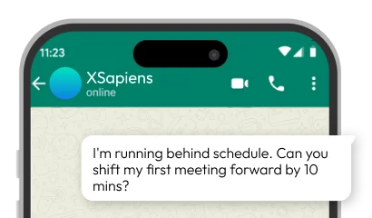 No more back-and-forth messages. XSapiens.AI finds the perfect time and confirms the calendar invite across WhatsApp and Gmail.