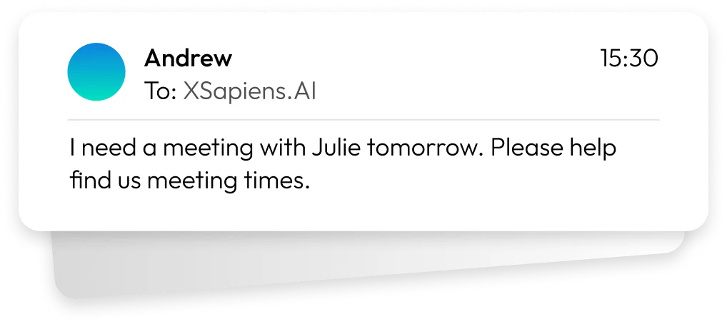 Bring XSapiens.AI into any email thread to effortlessly schedule your next meeting by checking availability and confirms the best time in your calendar.